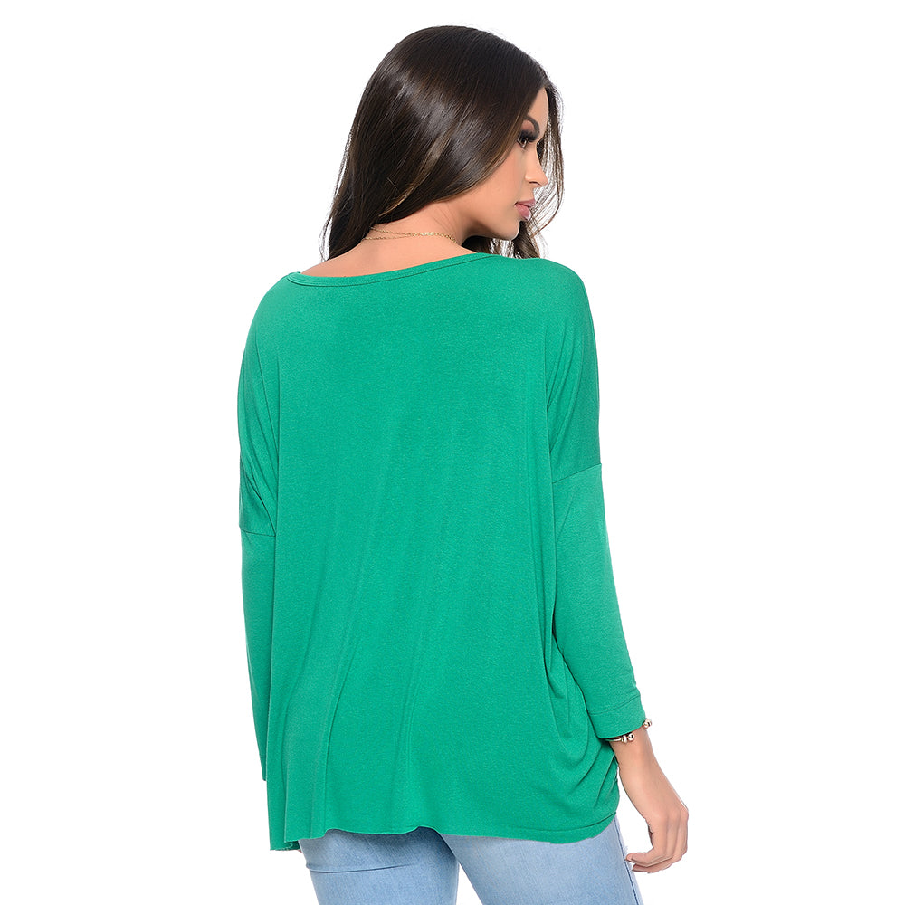 Blusa Quadrada M/L Decote Canoa BBonnie Helô Verde Bandeira