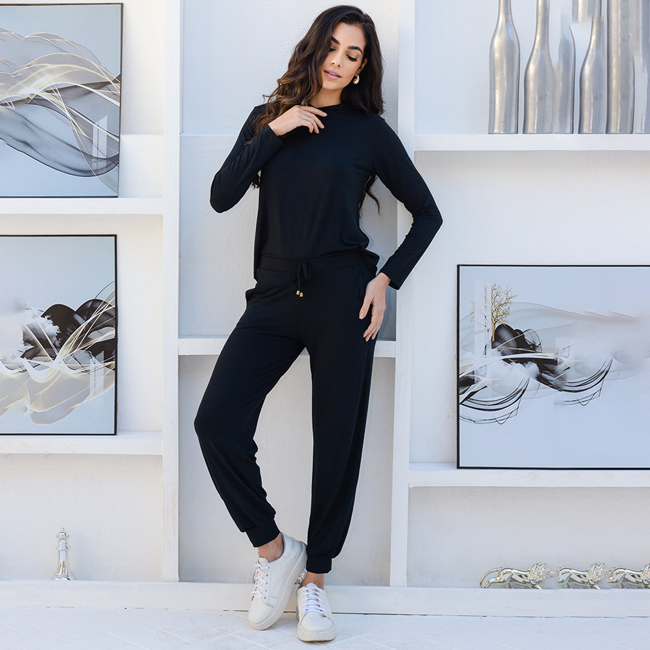 Conjunto Suelen – Blusa com Capuz e Calça Jogger em Viscolycra – B’Bonnie