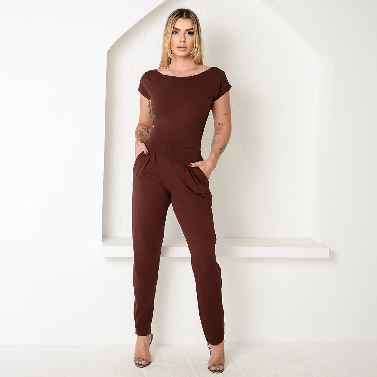 Macacão Longo – Manga Curta com Decote Canoa – B’Bonnie