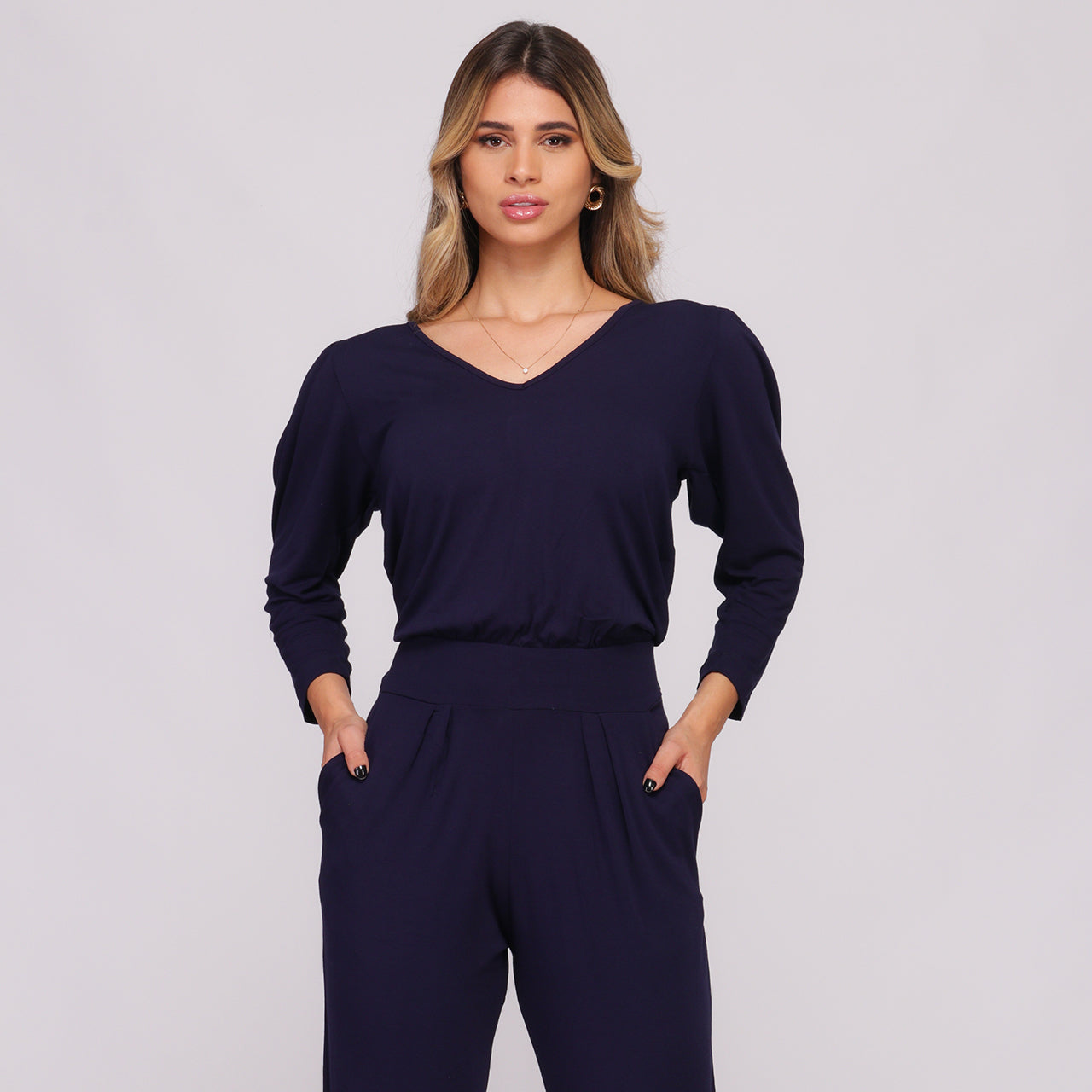 Macacão Manga Bufante BBonnie Greta Azul Marinho