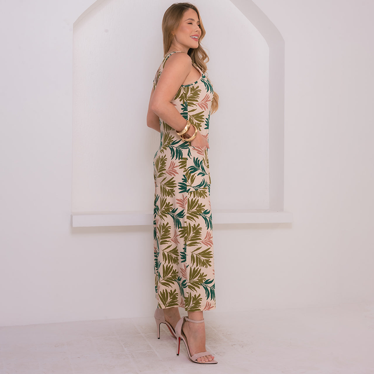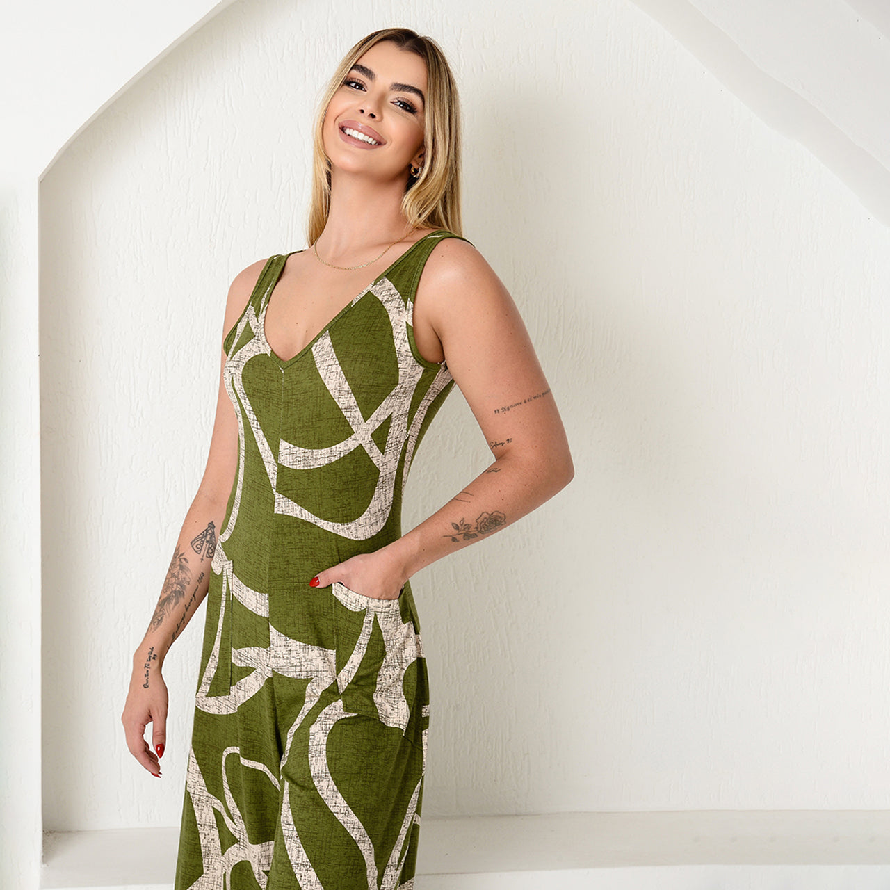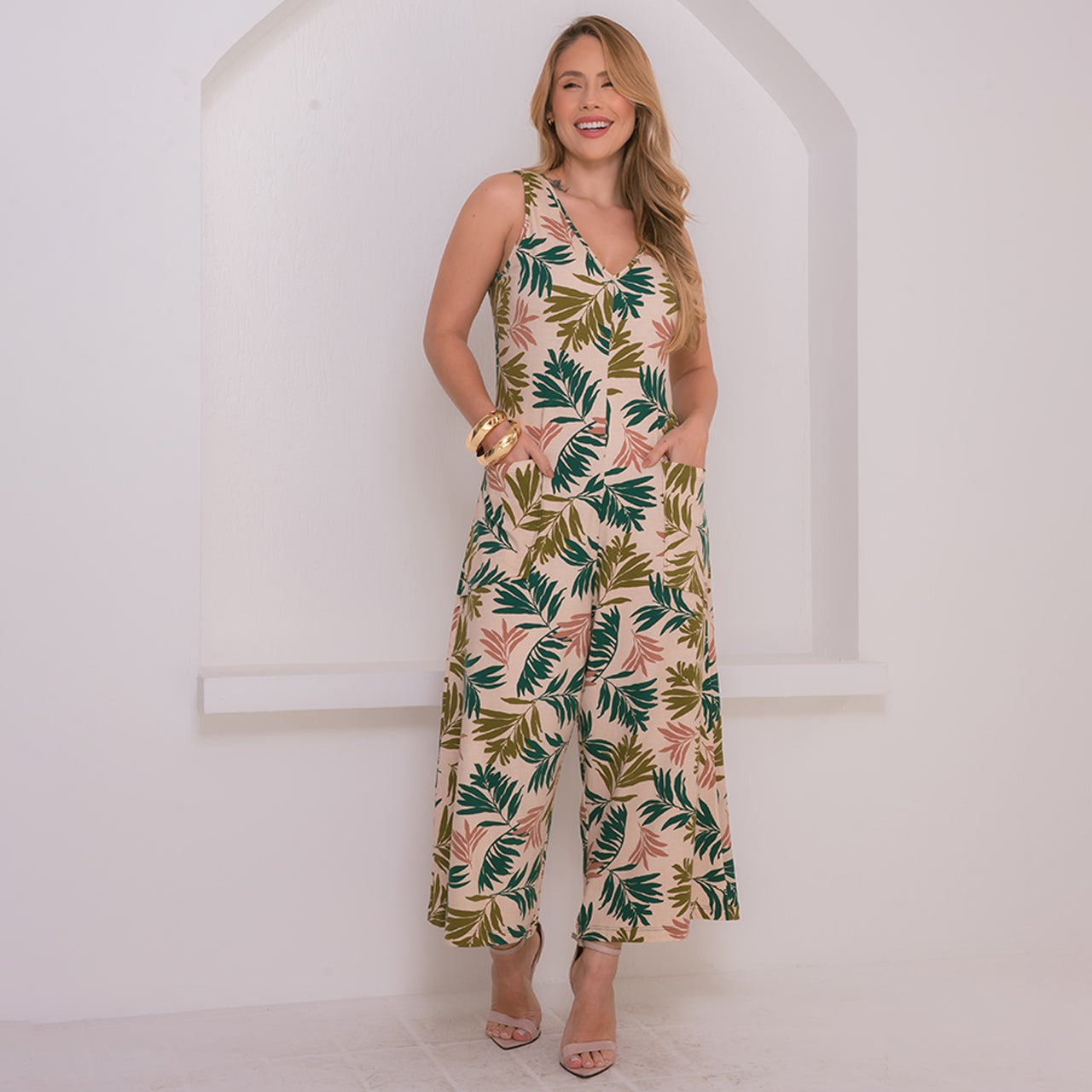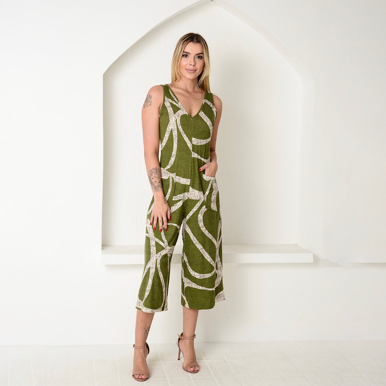 Macacão Pantacourt de Alças e Bolsos BBonnie Carla Estampados