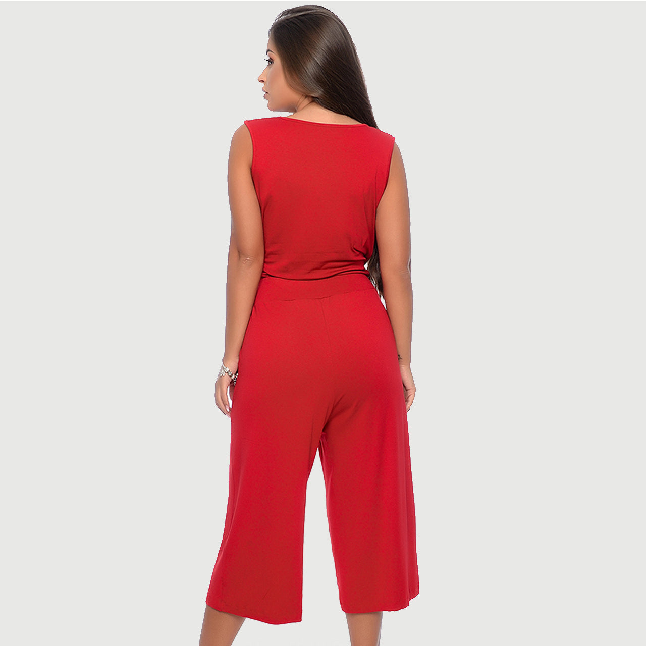 O Macacão Joana é confeccionado em viscolycra com modelagem pantacourt, decote V transpassado, bolsos frontais e cós anatômico com faixa para amarração. Sem mangas, é ideal para dias quentes e ocasiões que pedem conforto com sofisticação.