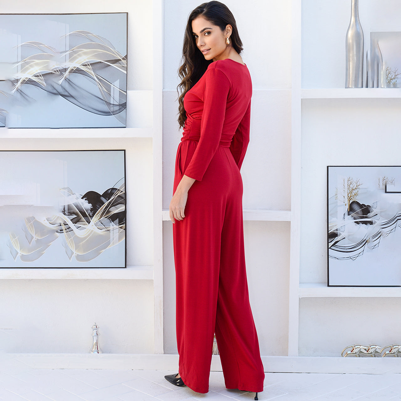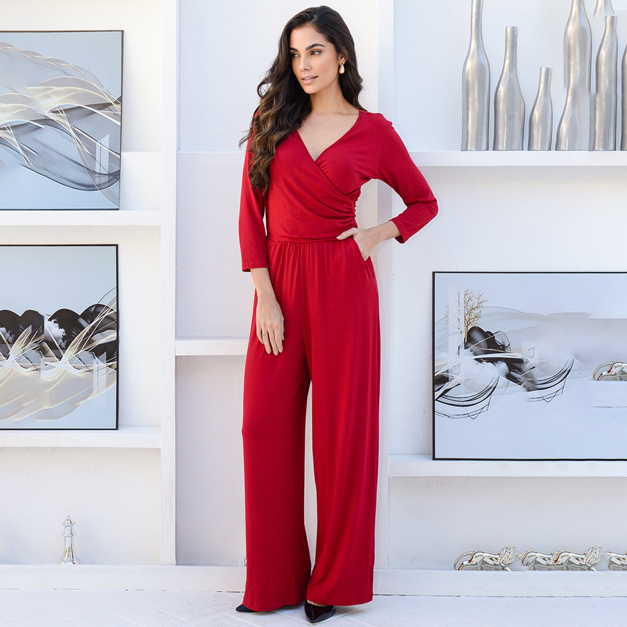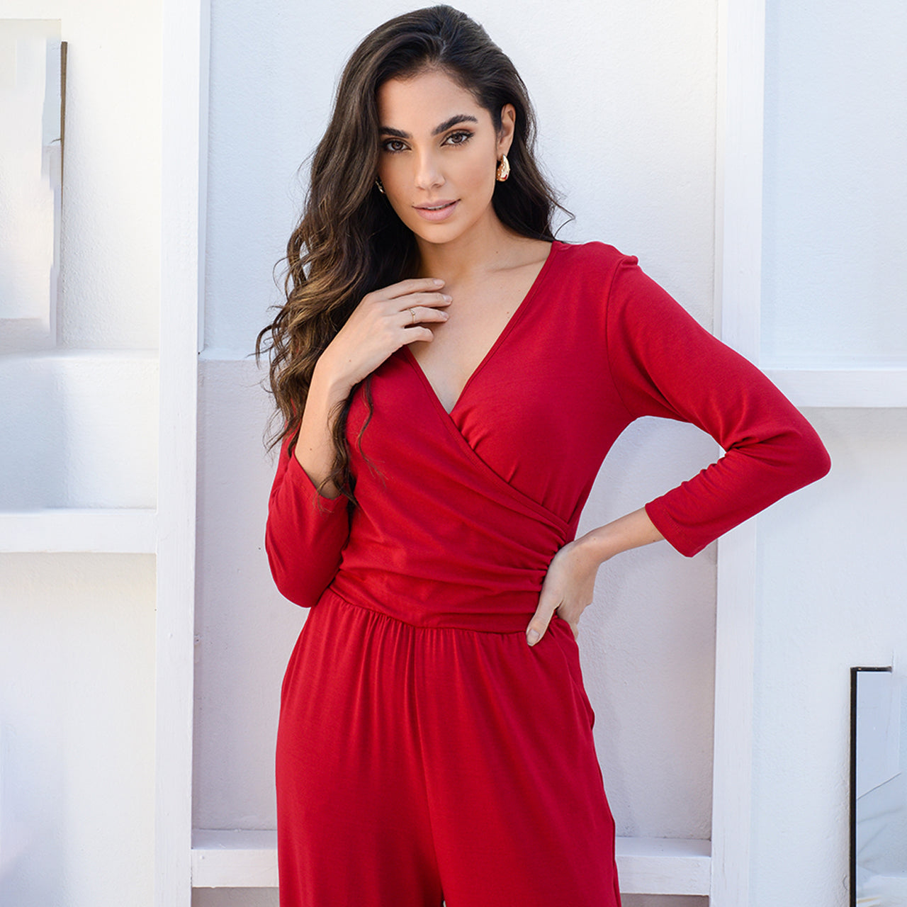 O Macacão Florence é confeccionado em viscolycra com modelagem pantalona, decote V transpassado, mangas longas, bolsos frontais e elástico na cintura. Um modelo elegante e versátil que vai do casual ao sofisticado com facilidade.