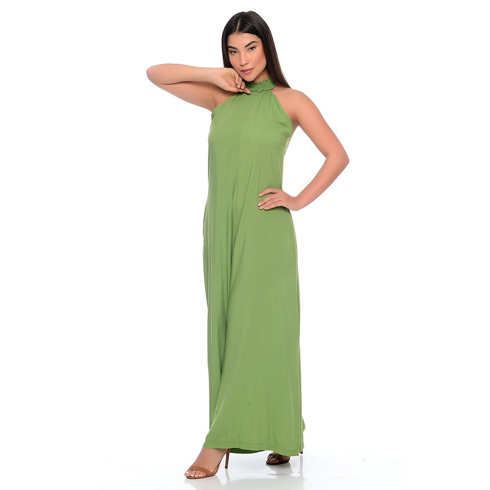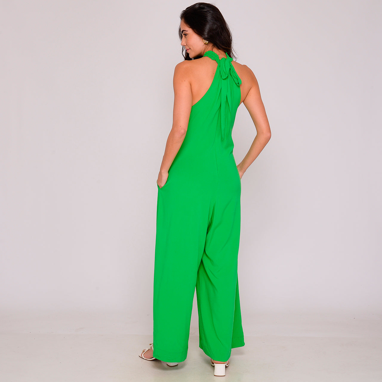 O Macacão Louise traz modelagem pantalona, gola alta com amarração nas costas e shape levemente solto. Confeccionado em viscose leve e sem mangas, é perfeito para produções modernas com conforto e estilo.