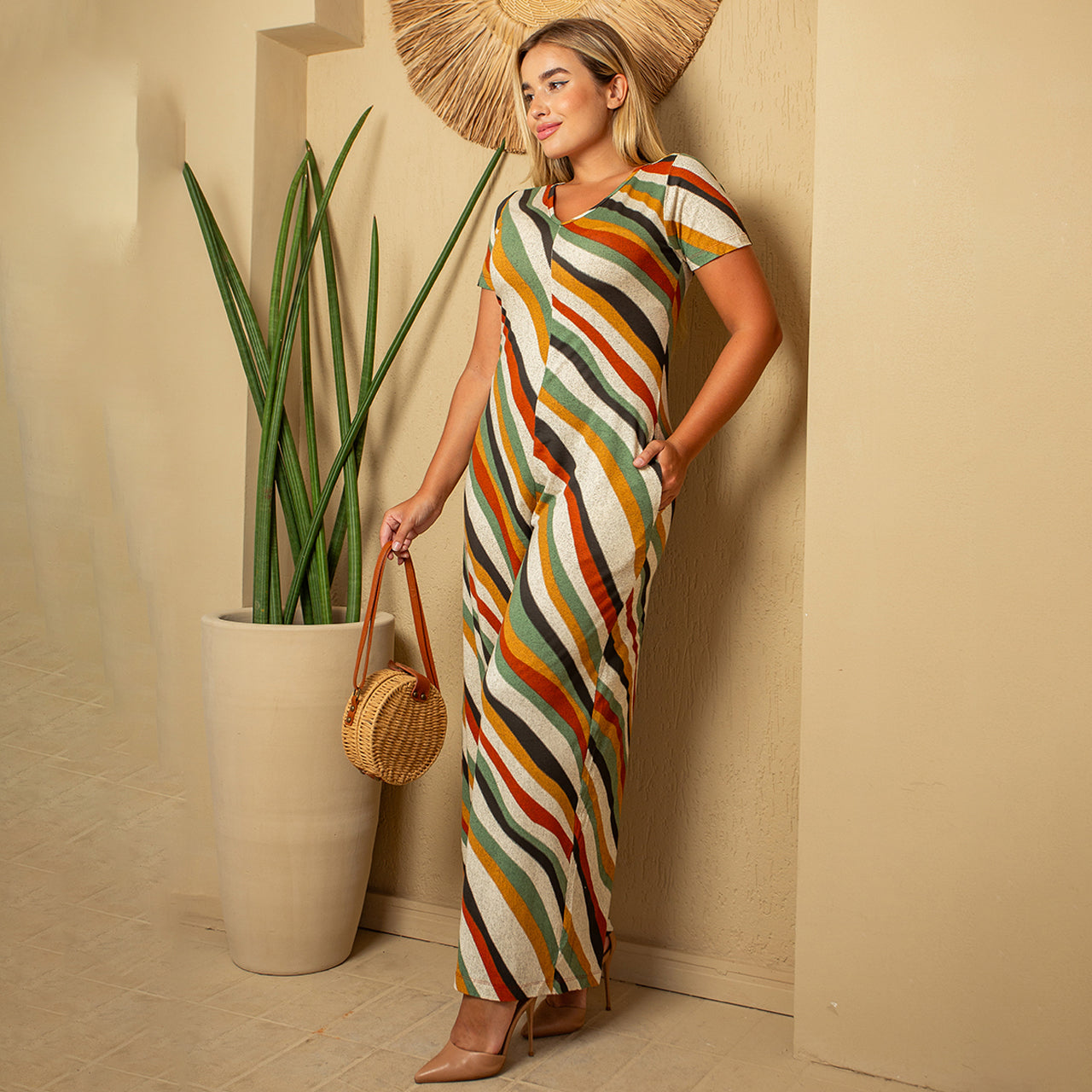 Macacão Pantalona M/C Bolsos BBonnie Esther Estampados