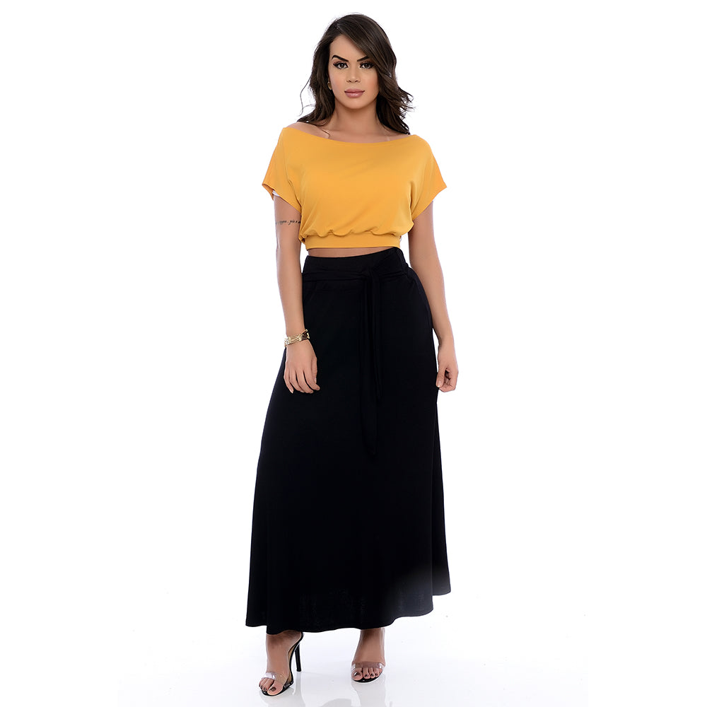 Versátil e charmosa, a saia longa combina com diversos estilos e valoriza todos os tipos de corpo. Use com cintos, croppeds ou blusas ajustadas para compor visuais modernos e femininos.