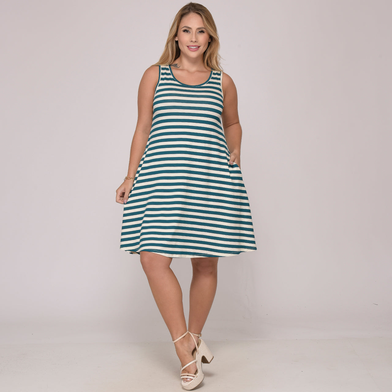 O vestido apresenta modelagem trapézio, decote redondo e bolsos frontais. Com a barra levemente ampla, valoriza o quadril e permite liberdade de movimento. Uma peça versátil que combina com diferentes estilos e acessórios, ideal para o dia a dia ou para ocasiões casuais.