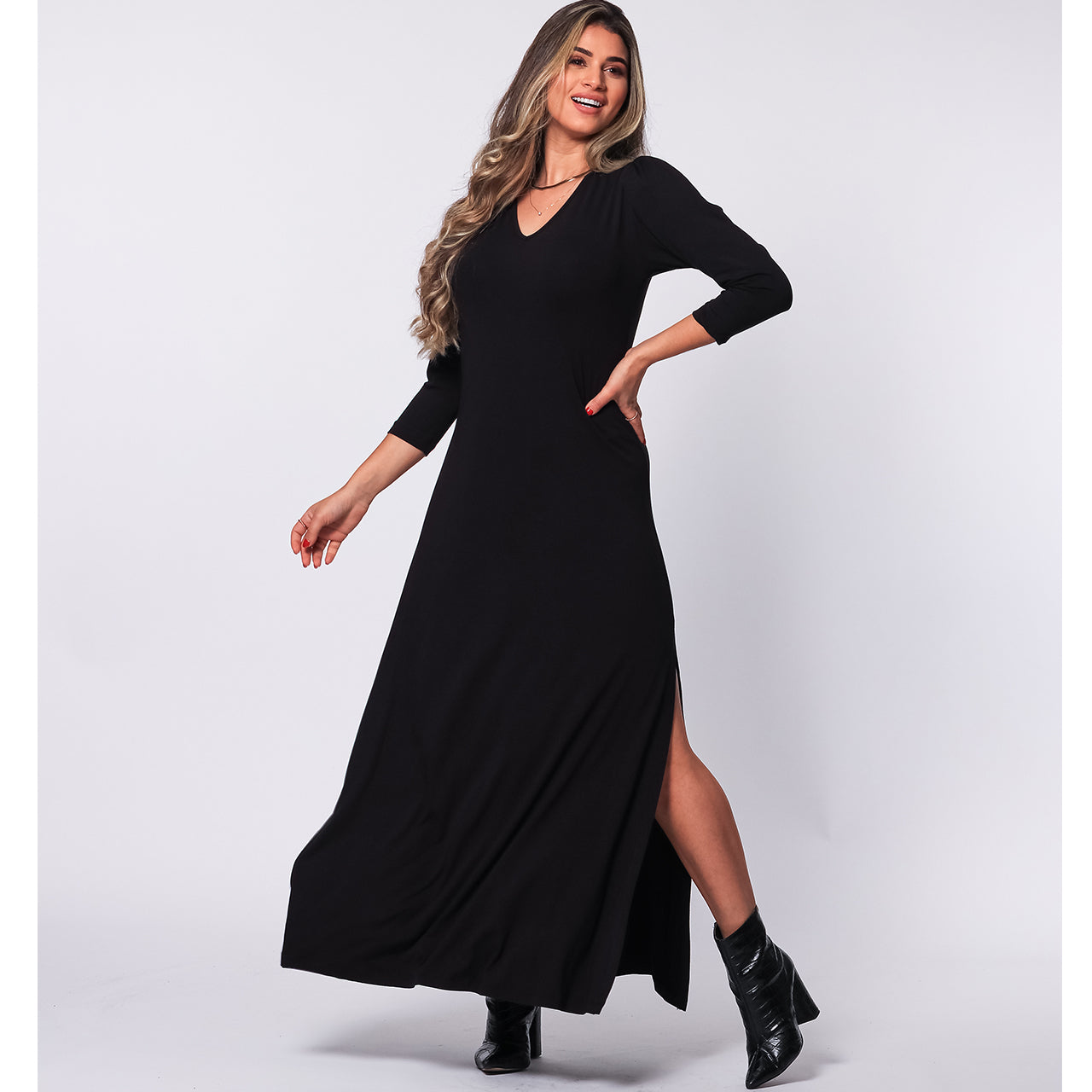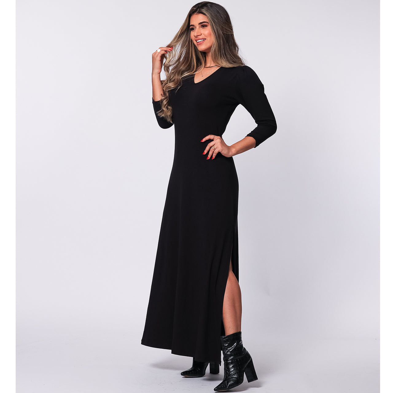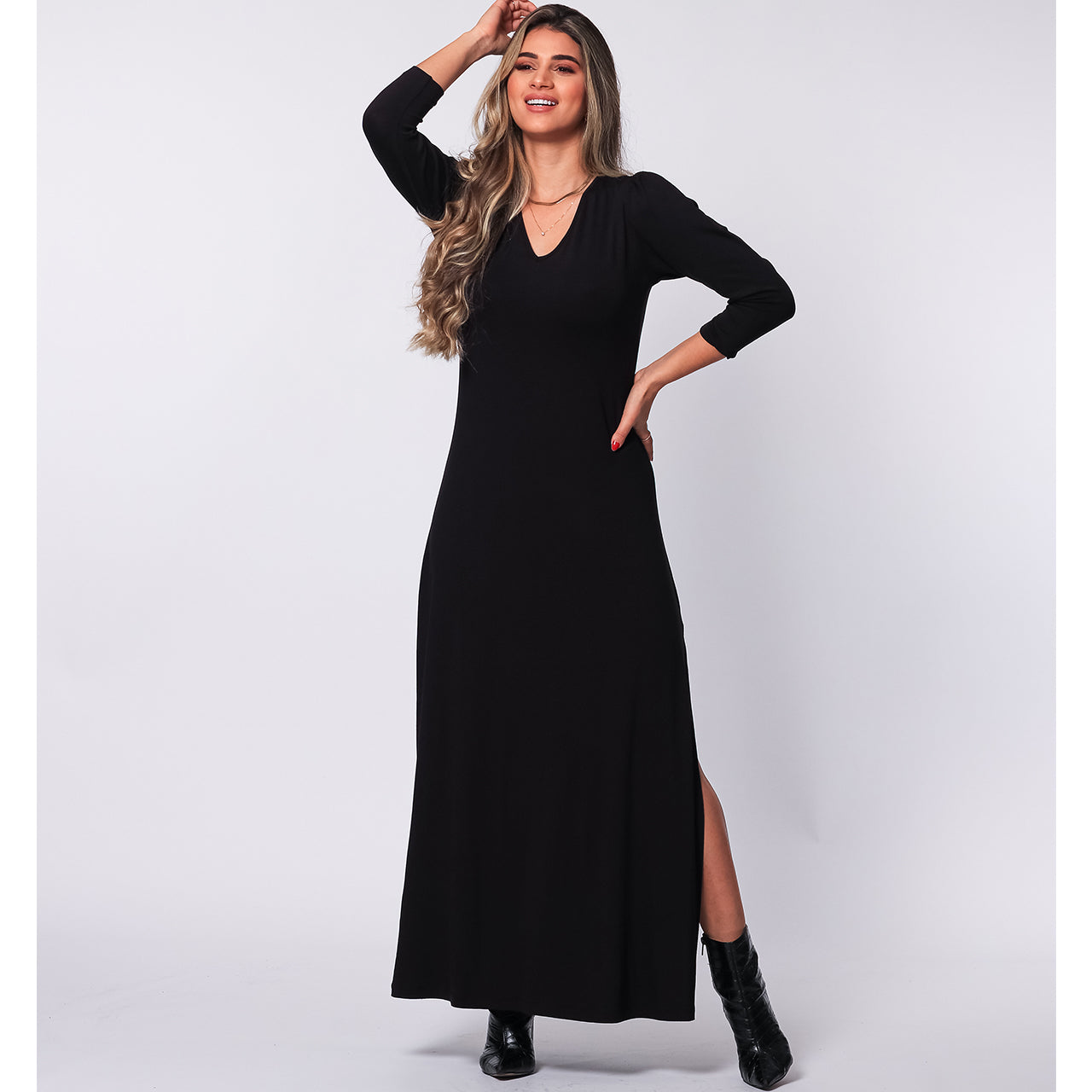 Vestido Longo Fenda Lateral BBonnie Tiana Preto